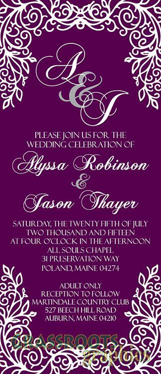 We specialize in custom designs. Come in or email us and we can design the perfect invitation for your wedding, and coordinate your programs, place settings and thank you cards to match